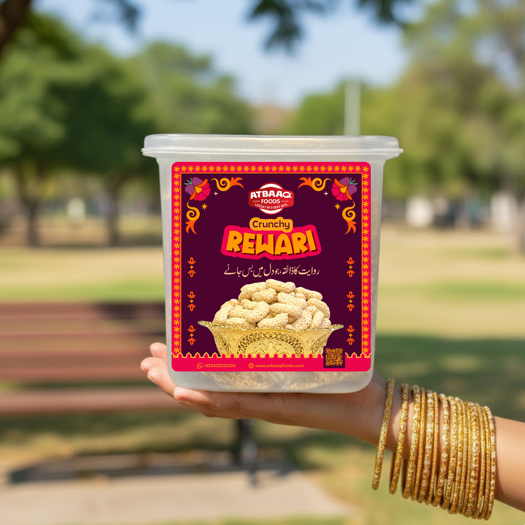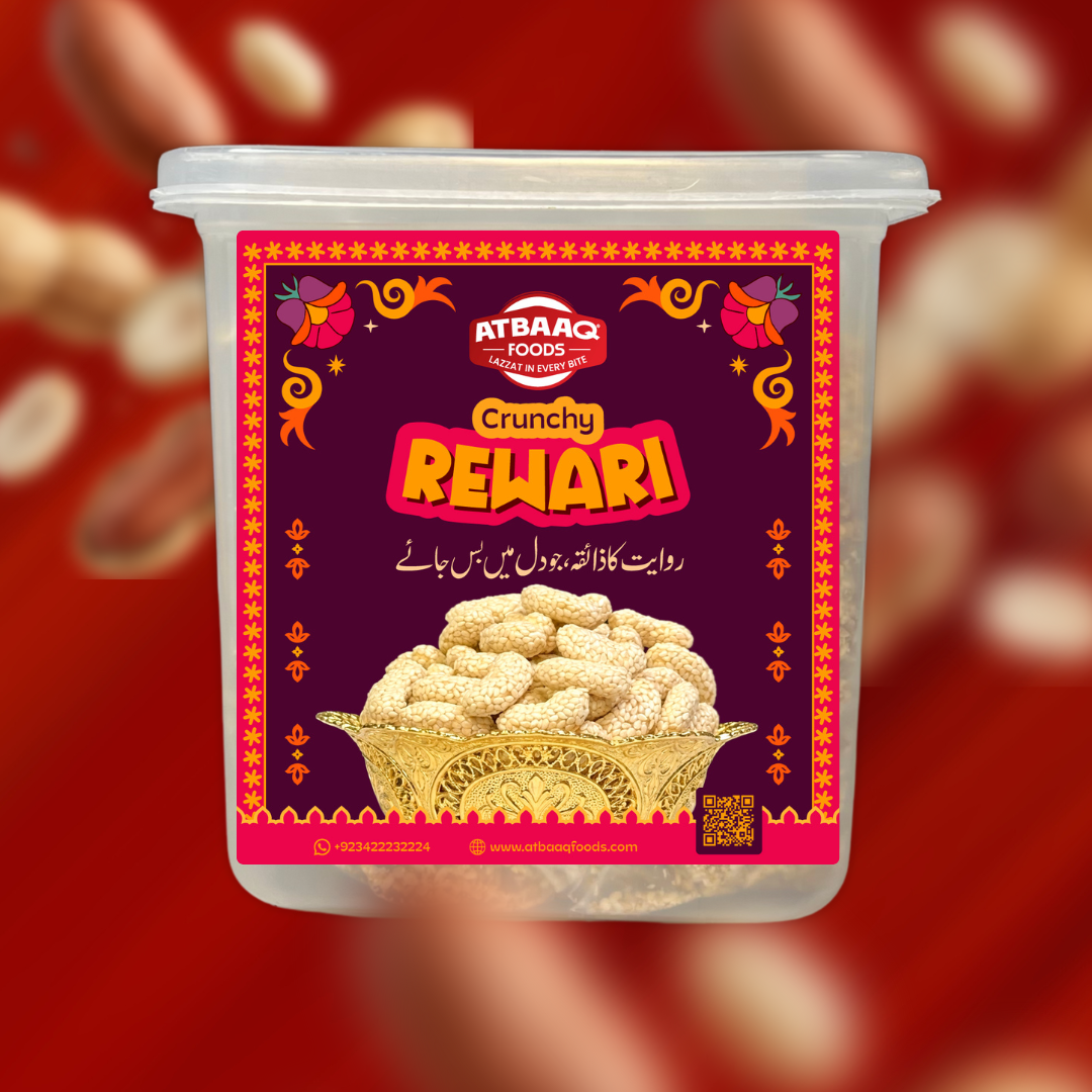 Crunchy Rewari is a classic traditional sweet made with pure jaggery, desi ghee, and white sesame seeds. Carefully prepared to deliver a rich taste and satisfying crunch, this sweet treat is perfect for those who love authentic homemade flavors. Every bite offers warmth, sweetness, and tradition.